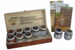 It contains ten glasses with five colour pigments each and the appropriate structure material, which were extracted from domestic soils. The paintbox is a "refill product". This means that the 10 glasses containing colour pigments and structure material, respectively, can be replaced and / or refilled.